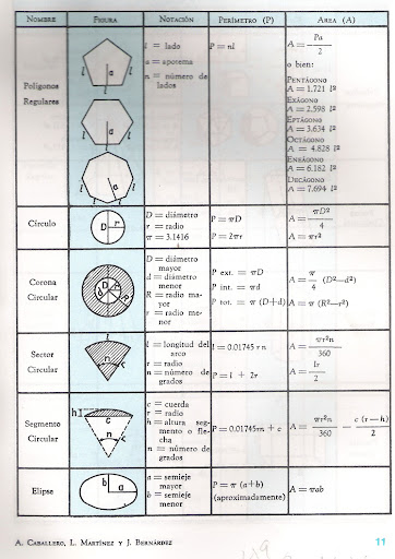 aquí les dejo un par de fórmulas, de círculos, rectángulos, triángulos y otras formas diversas espero que les sea útil lo pongo, porque yo algún día necesites transformó las formas que las que no las encontré sobre todo la del elipse es por eso que las hubo espero les sea útil, además algunos tipos de medidas con sus respectivas abreviaturas que lo disfruten.